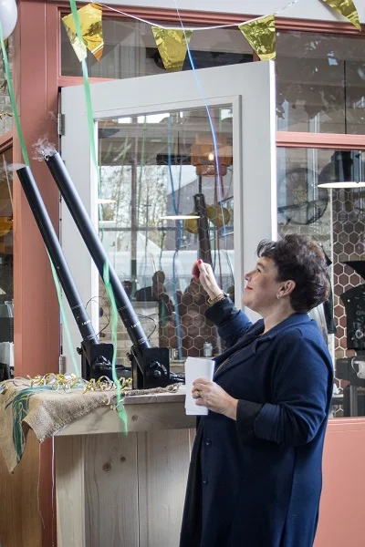 Na een periode van hard werken was het eindelijk tijd om de nieuwe werkplaats van de Van der Hoeven Kliniek locatie Oudlaan op feestelijke wijze te openen. De opening werd voltrokken door burgemeester Sharon Dijksma, die toelichtte hoe het werken in de koffiebranderij een mooie stap is in de resocialisatie van de patiënten.